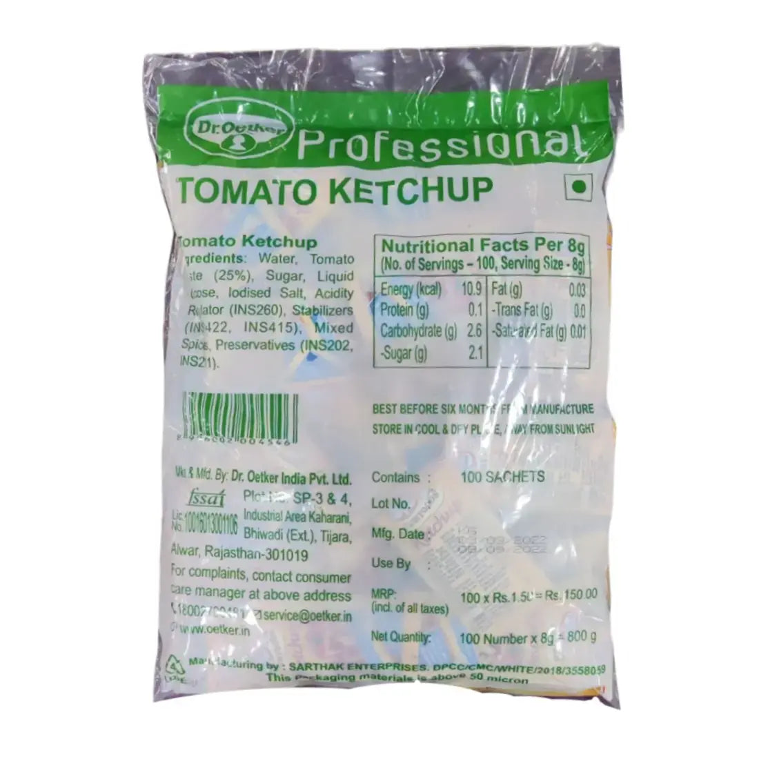 Dr. Oetker Funfoods Tomato Ketchup Sachets – 8 gm × 100 pcs | Convenient Single-Serve Ketchup