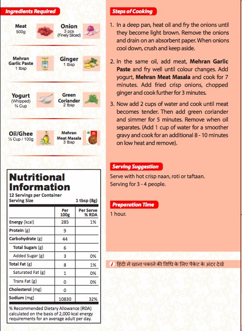Crafted by Mehran with ingredients like coriander, chilli, cumin, garlic & ginger for rich flavour.